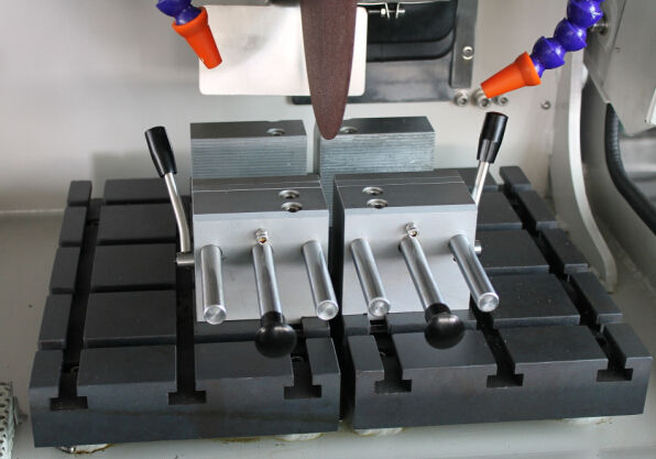 本机是由切割系统,冷却系统,照明系统,清洁系统等组成。设备上部完全被可开合的防护罩盖住,防护罩前面是一个超大的观察窗,配合高亮度照明系统使用操作者随时掌握切割过程。右侧设计科学的手动切割拉杆设计使切割大型工件非常轻松自如。带凹槽的铸铁工作台配合虎钳可以胜任各种异形工件的切割。超强的冷却系统使工件在切割时不会烧伤,冷却水箱安放在设备底座里面,水箱里面有过滤网,便于收集残渣废屑。门式安全开关以及防爆护罩保障了操作人员的安全。